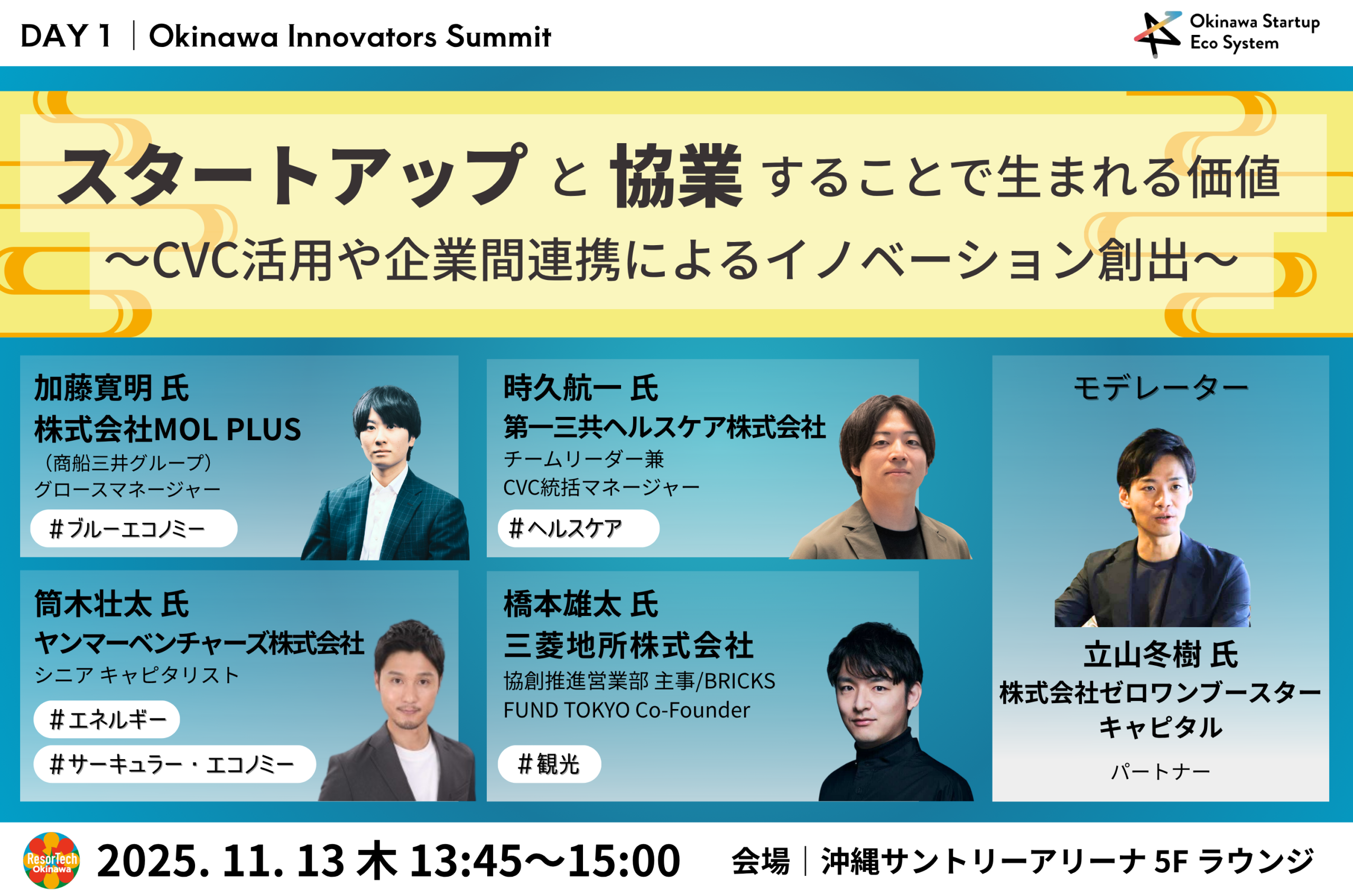 沖縄県のResorTech EXPO in Okinawa 実行委員会主催「ResorTech EXPO 2025 in Okinawa」におけるセッション「スタートアップと協業することで生まれる価値とは?」に本ファンドの担当者が登壇いたしました。